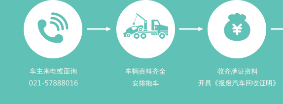是上海市政府定点企业,我们专业办理:上海市内外地车辆报废、上海高价回收报废车、上海报废客车回收、上海大巴车报废、上海轿车报废等业务.我们还提供免费上门拖车、免费办理报废手续和帮您申领上海报废车补贴,有关机动车报废问题,欢迎您随时来电咨询.